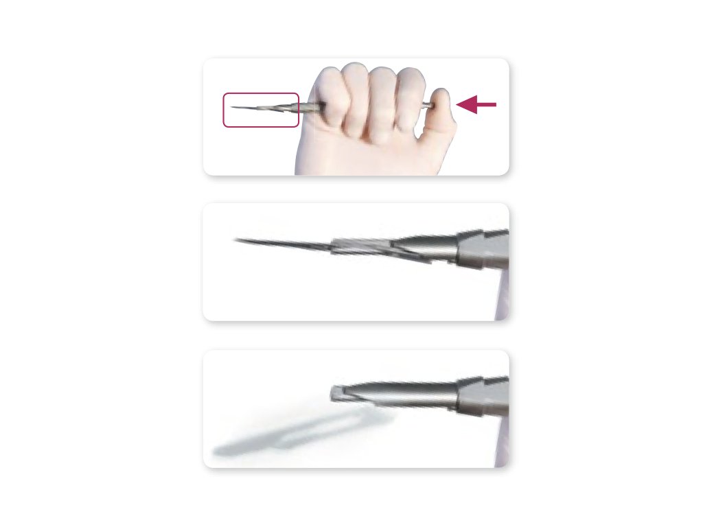 Výhodou je, že použitá čepel může být bezpečně a kontrolovaně odstraněna, což zabraňuje kontaminovanému poranění nebo infekci.